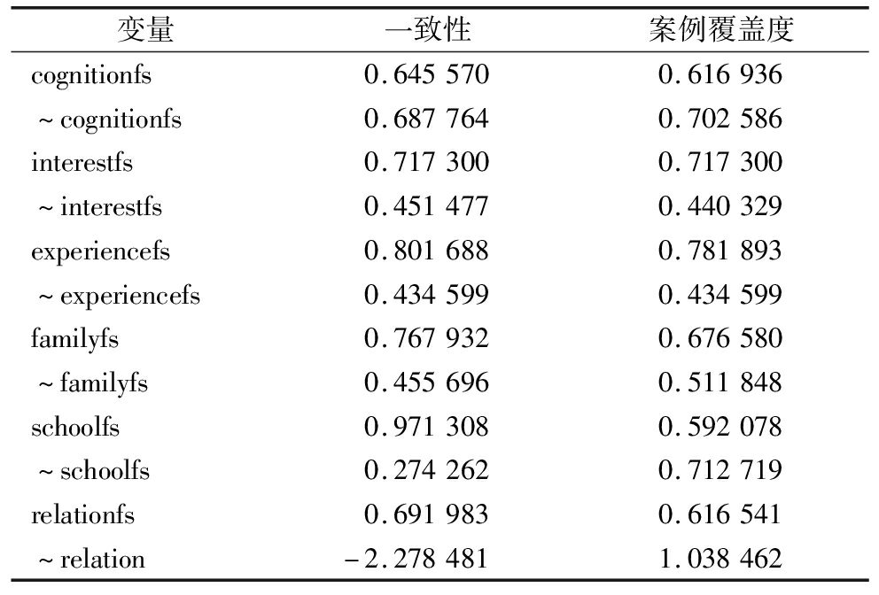 变量一致性案例覆盖度cognitionfs0.6455700.616936^cognitionfs0.6877640.702586interestfs0.7173000.717300^interestfs0.4514770.440329experiencefs0.8016880.781893^experiencefs0.4345990.434599familyfs0.7679320.676580^familyfs0.4556960.511848schoolfs0.9713080.592078^schoolfs0.2742620.712719relationfs0.6919830.616541^relation-2.2784811.038462