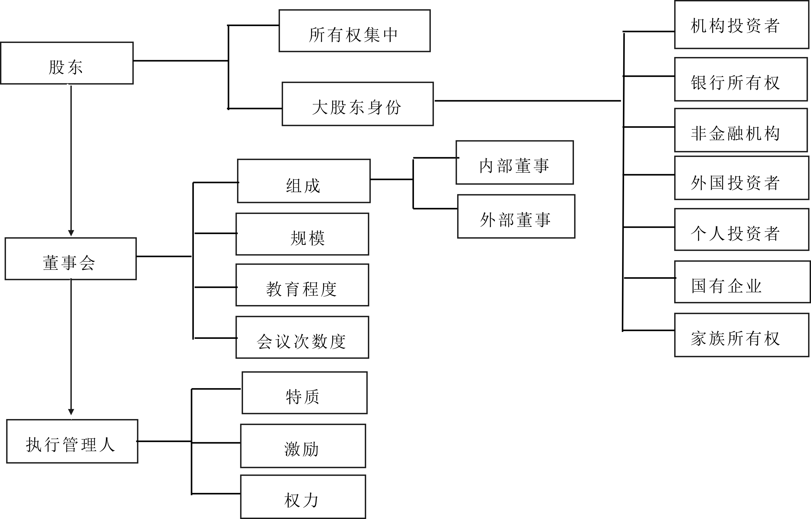 公司治理对企业创新决策的影响主要围绕某个或多个治理要素。为细化公司治理对企业创新的影响,有效把握这一领域研究内容,根据主要治理要素将研究主题划分为所有权结构、董事会职能及高管治理对企业创新的影响,如图5所示。