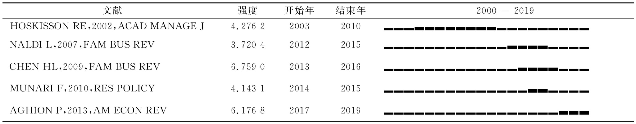 文献强度开始年结束年2000 - 2019HOSKISSON RE,2002,ACAD MANAGE J4.276 220032010▂▂▂▃▃▃▃▃▃▃▃▂▂▂▂▂▂▂▂▂NALDI L,2007,FAM BUS REV3.720 420122015▂▂▂▂▂▂▂▂▂▂▂▂▃▃▃▃▂▂▂▂CHEN HL,2009,FAM BUS REV6.759 020132016▂▂▂▂▂▂▂▂▂▂▂▂▂▃▃▃▃▂▂▂MUNARI F,2010,RES POLICY4.143 120142015▂▂▂▂▂▂▂▂▂▂▂▂▂▂▃▃▂▂▂▂AGHION P,2013,AM ECON REV6.176 820172019▂▂▂▂▂▂▂▂▂▂▂▂▂▂▂▂▂▃▃▃