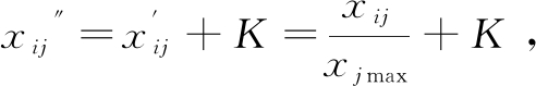 本研究所有指标均为正向指标,但存在部分指标取值为零的极端值情况,需要对数据进行非零化处理。因此,借鉴相关文献,利用平移法改进熵值法[18-19]。令