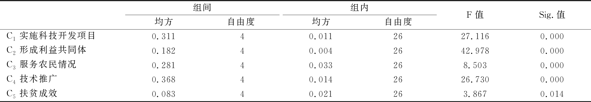表7 方差分析结果