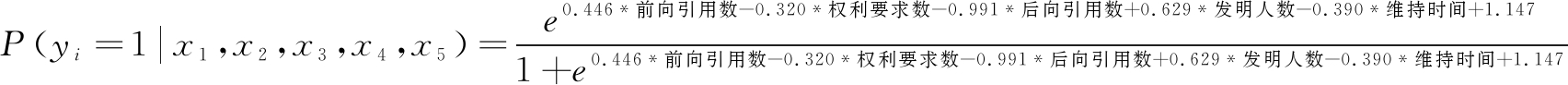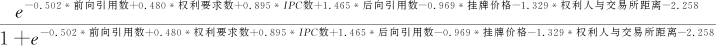 由回归模型A的结果,最终得到专利i发生转让的概率预测模型为: