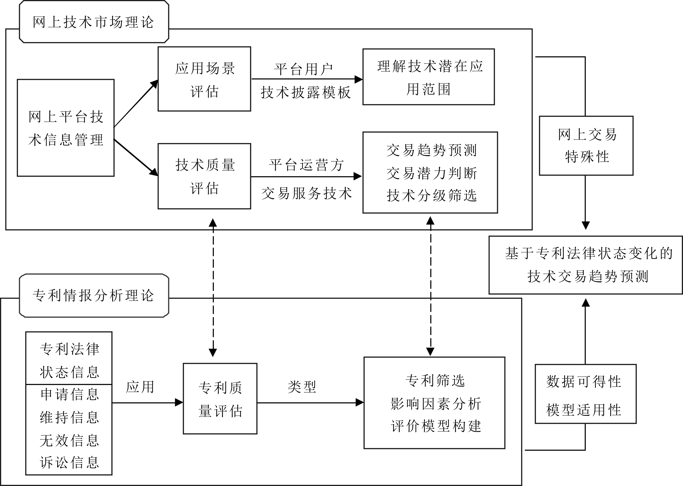 综上所述,本文希望提出一种基于专利法律状态变化的网上技术交易趋势预测模型,以便网上平台根据自身技术资源情况开展技术质量评估,完善平台整体技术信息管理体系,有助于提高网上交易服务能力和网上技术市场运作效率,研究主要逻辑见图1。