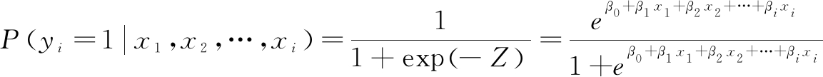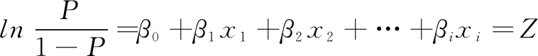 由于专利法律状态变化与否是二分类变量,可利用二分类 Logistic模型进行预测分析。预测模型中的因变量y取值为1 ,表示发生了某种法律状态变化;y取值为0 ,表示未发生相应的法律状态变化。函数P代表发生某种法律状态变化概率,函数P中的自变量是研究前期选取的分析指标,分别记为 x1,x2,…,xi,则可得到某种法律状态变化概率的预测模型。具体而言,专利i发生某一专利法律状态变化的概率P(yi=1|x1,x2,…,xi)可以表示为(式中,β0为常数项,β1 ~ βi分别为自变量 x1 ~ xi的回归系数):