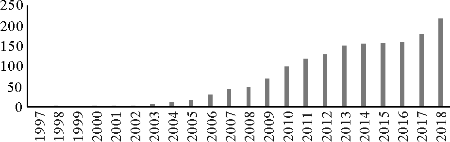 基于理论抽样原则,选择浙江绿源电动车有限公司(以下简称绿源)为案例研究对象,主要基于以下原因:①企业代表性。电动自行车(以下简称电动车)在中国被视为颠覆性技术产品[21],同时也是符合中国国情的时代产物,为本研究提供了独一无二的素材。本研究旨在从企业层面探索颠覆性技术与商业模式的共演过程,绿源是电动车行业的先驱和典型性企业,成立于1997年,2007年曾当选美国著名新经济杂志《Fast Company》的“快速50佳”,并在2016年荣获“Super Brands China”桂冠。绿源销量一直保持高速增长,截止到2018年,累计销售1 626万辆,销量时间分布如图1所示,其成功模式为研究颠覆性技术与商业模式共演过程提供了相对完整的素材;②数据可获得性。颠覆性技术与商业模式演化是一个长期过程,绿源专注于颠覆性创新实践已有20余年时间,积累了丰富经验,纵向数据资料丰富且详尽。此外,绿源创始人倪捷与外界互动频繁,方便获取更多数据,有利于研究的顺利开展。