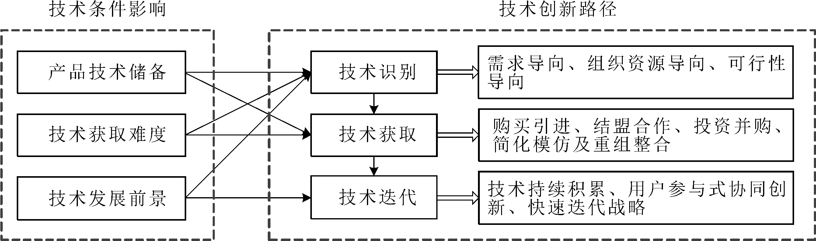 小米公司在技术条件的影响下,通过技术识别、技术获取和技术迭代实现颠覆式产品创新,如图2所示。