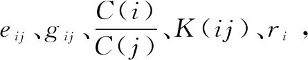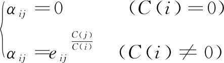 其中,eij指节点j对i的竞争指数, αij取值范围为[0,1],C(i)取值范围为[0,+
