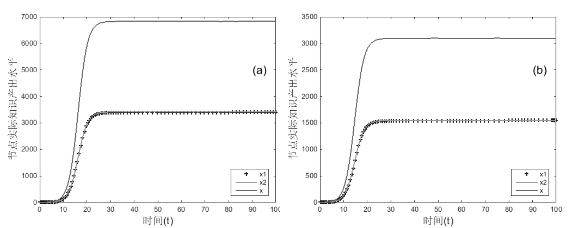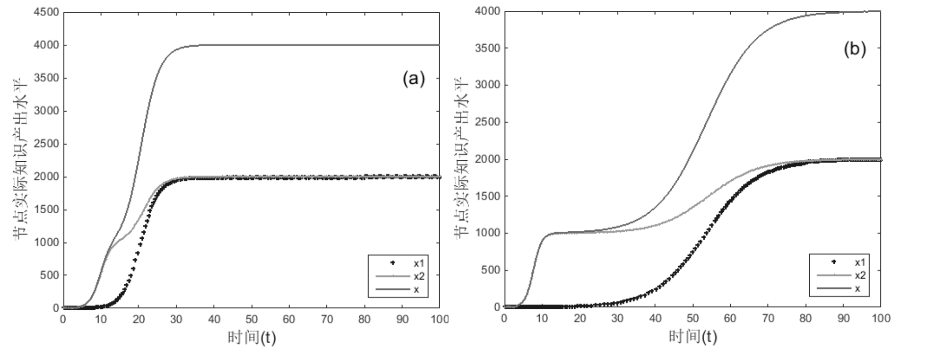该节点随时步的知识产出增长Logistic模型[15]为: