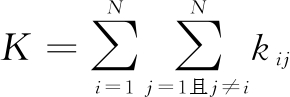 由此可得,创新网络知识熵K为所有节点间知识熵的总和,即: