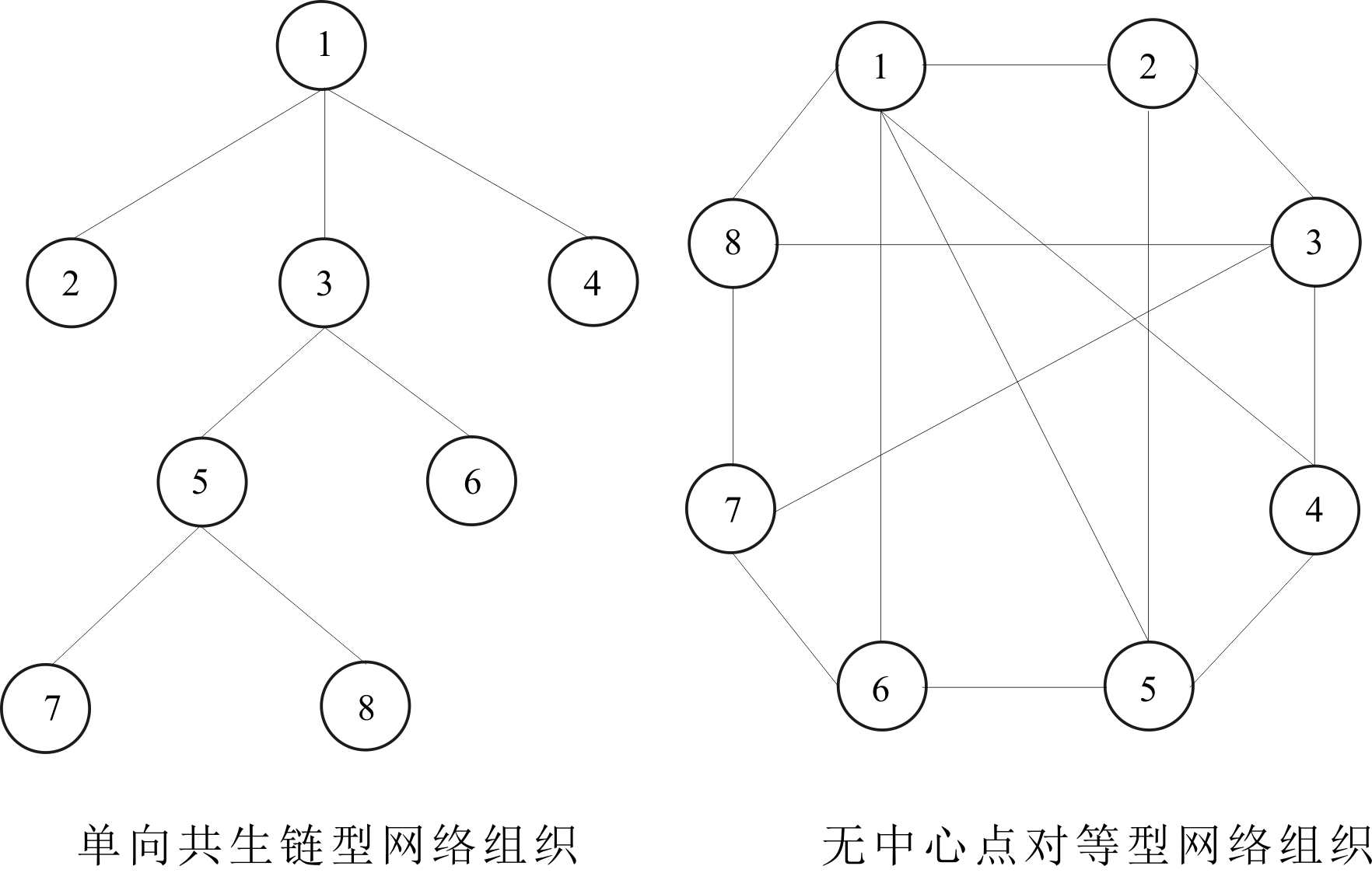 图3 共生网络的两种组织结构示例