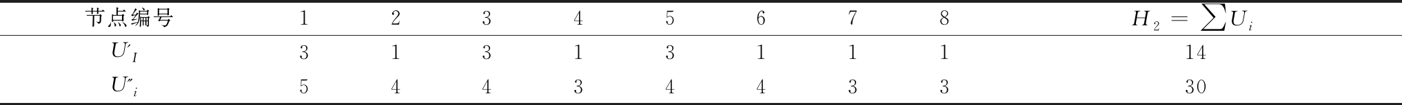 节点编号12345678H2=∑UiU'I3131311114U''i5443443330