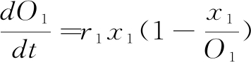 O1表示节点在一个时步内利用网络中有限知识资源实现最大创新效率所能达到的最大知识产出水平;x1表示该节点在一个时步内达到的实际知识产出水平;r1表示节点在无金融市场因素、政府等外界环境干扰和行业内外其它节点影响的情况下,有效知识获取的自然增长率。