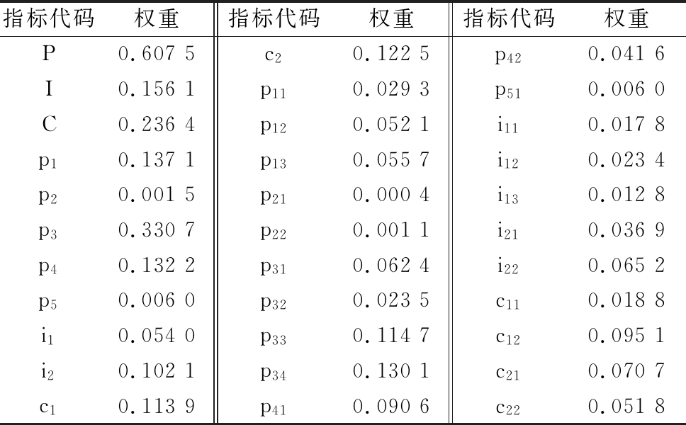指标代码权重指标代码权重指标代码权重P0.6075c20.1225p420.0416I0.1561p110.0293p510.0060C0.2364p120.0521i110.0178p10.1371p130.0557i120.0234p20.0015p210.0004i130.0128p30.3307p220.0011i210.0369p40.1322p310.0624i220.0652p50.0060p320.0235c110.0188i10.0540p330.1147c120.0951i20.1021p340.1301c210.0707c10.1139p410.0906c220.0518