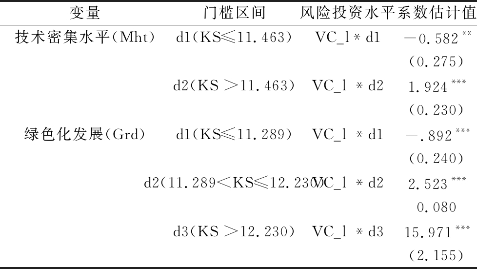 其中,Yit为因变量(产业价值创造Add、技术密集水平Mht、绿色化发展Grd),核心解释变量VC_li,t-1为风险投资水平,I为门槛变量(知识溢出水平KS i,t-1),λ为待估门槛值,I(*)为示性函数。