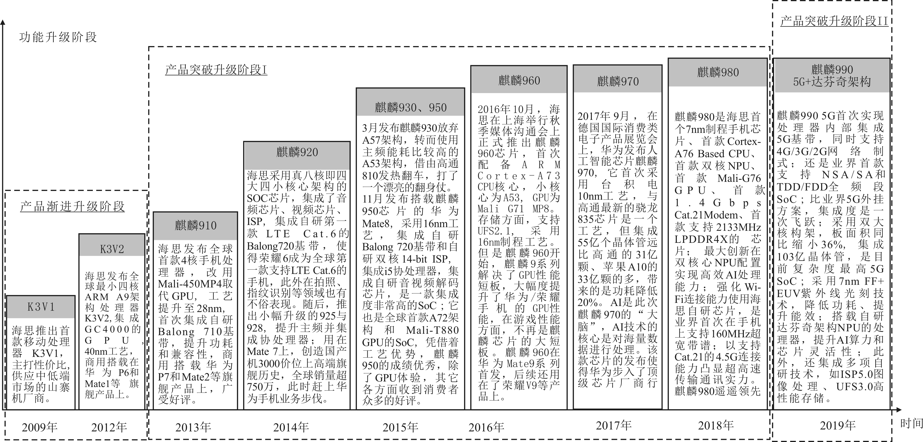 图3 麒麟芯片产品升级脉络及模式阶段划分