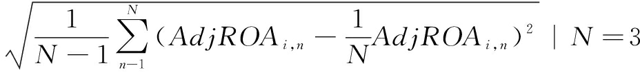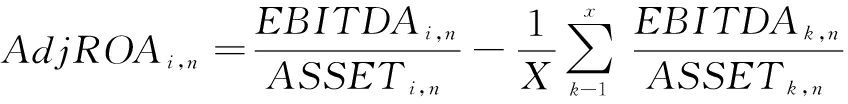 式(1)中,盈利能力(ROA)用当年税息折旧摊销前利润(EBITDA)与年末总资产(ASSET)之比得出,X代表企业所处行业的个体总数。