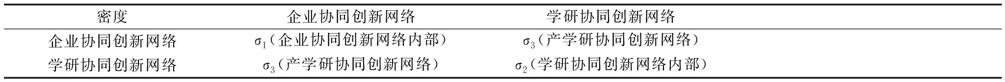 密度企业协同创新网络学研协同创新网络企业协同创新网络σ1(企业协同创新网络内部)σ3(产学研协同创新网络)学研协同创新网络σ3(产学研协同创新网络)σ2(学研协同创新网络内部)