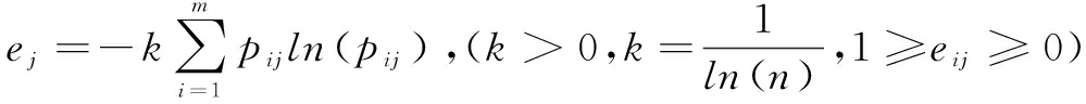 (3)计算第j项指标的熵值ej,如式(3)所示。