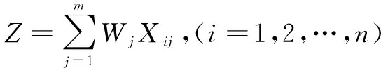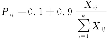 (2)计算第i年份第j项指标值的比重Pij,如式(2)所示。