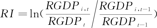 其中,RI为区域一体化指数,该指数数值越大,区域一体化水平越高;RGDPi,t和RGDPi,t-1分别为t及t-1年份i城市的人均GDP;RGDPt和RGDPt-1则为t和t-1年份长三角地区人均GDP。