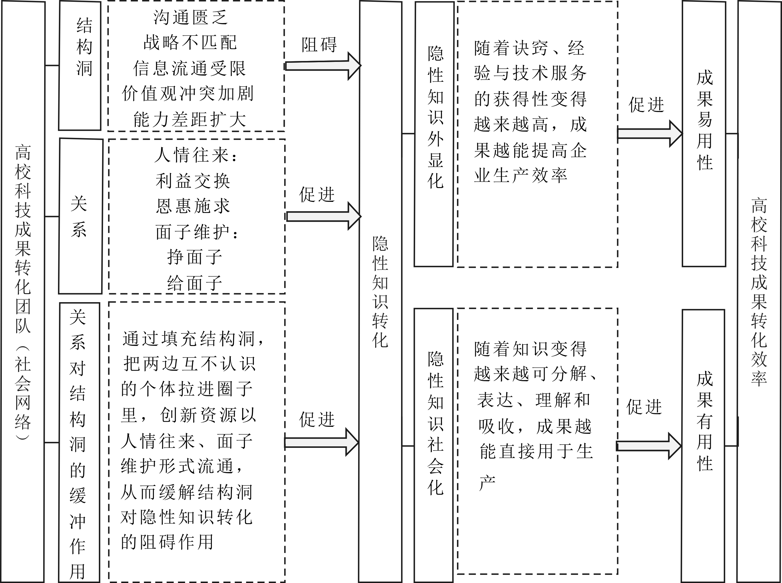 图6 关系与结构洞碰撞:高校科技成果转化的隐性知识转化