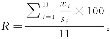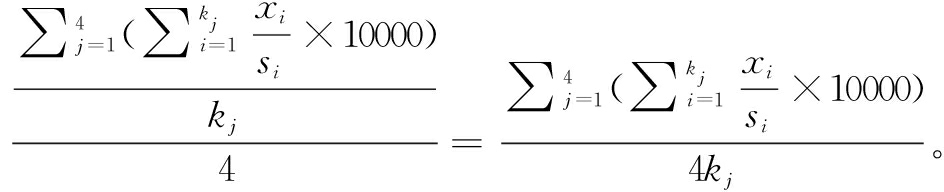式中,si为选定年度或地区的基准值,xi为其它年份或地区实际值,kj= 4、3、2、1分别为各类型指标数。