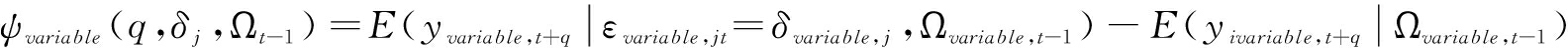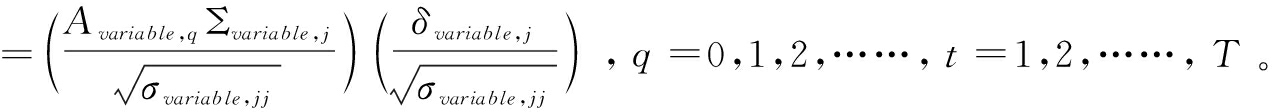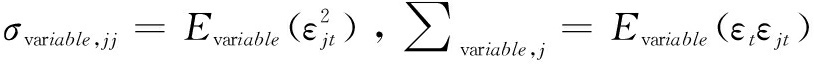表示εt协方差矩阵∑上的第j列元素,εt来自yvariable,t=Φ1yvariable,t-1+…+Φ1yvariable,t-p+εvariable,t中的扰动列向量εvariable,t,Φi为系数矩阵,p为滞后阶数。