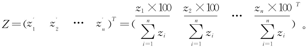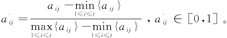 表示第k年所有指标对应数值。由于各指标间存在量纲差异,需对Bk进行离差标准化处理。标准化后的指标为