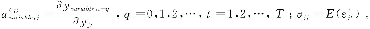 其中,测量方程中的解释变量为经协整检验后处于长期均衡状态的滞后第i阶影响因子,