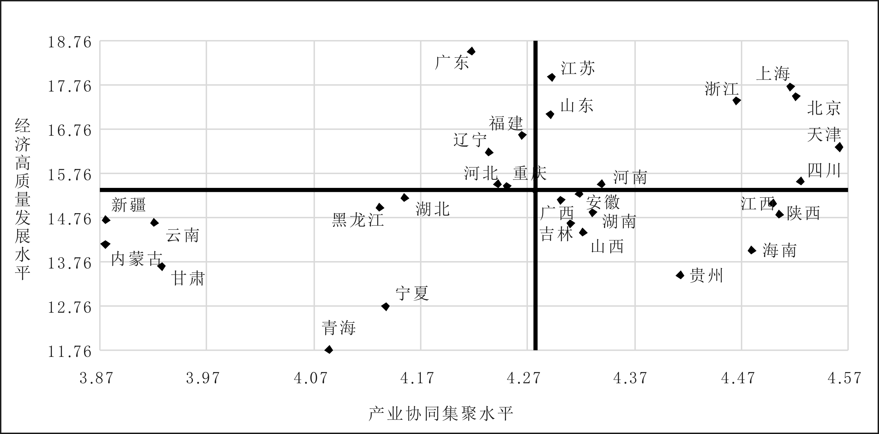 图3 区域产业协同集聚与经济高质量协同性的四象限分布