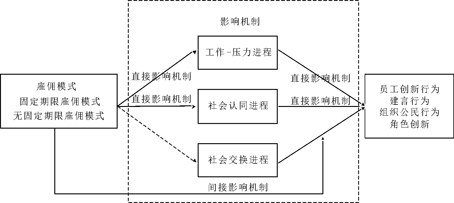 综上,本研究将在厘清现有研究对雇佣模式与员工创新行为之间关系的基础上,弥补现有研究对创新行为的组织-个体跨层次影响关注的不足,并拓展雇佣关系模式对个体创新行为的直接和间接影响机制,同时,为我国企业在劳动法律修改完善下更好地应对劳资关系、增强自身竞争优势提供一定启示和参考。