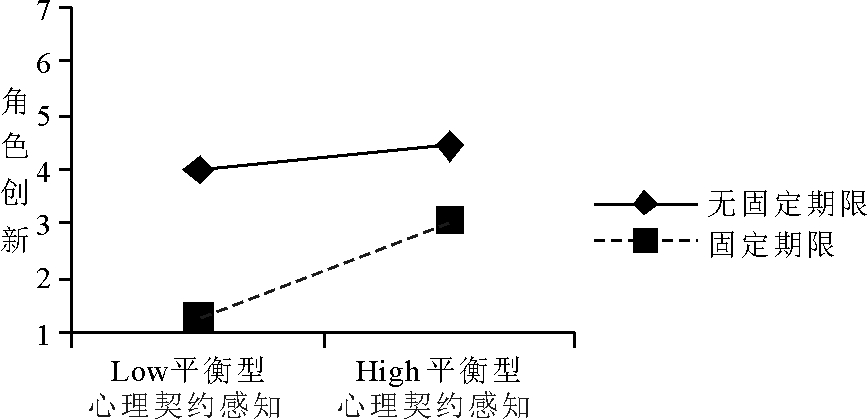 图6 雇佣模式与平衡型心理契约感知交互影响角色创新