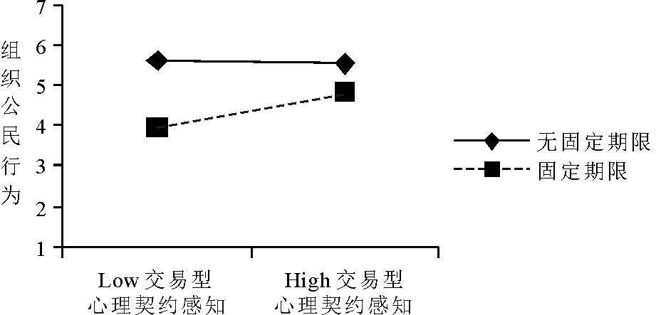 Fig.3 Employment model and transactional psychological contract perception interact to influence organizational citizenship behavior