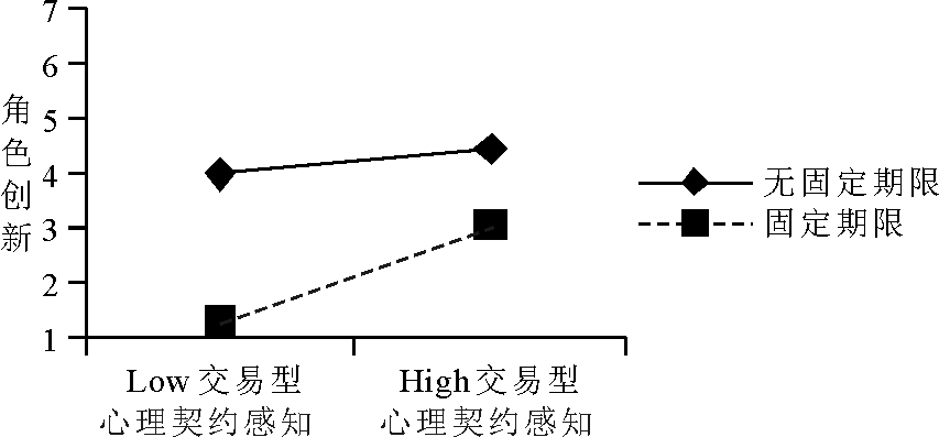 Fig.4 Employment model and transactional psychological contract perception interact to influence role innovation