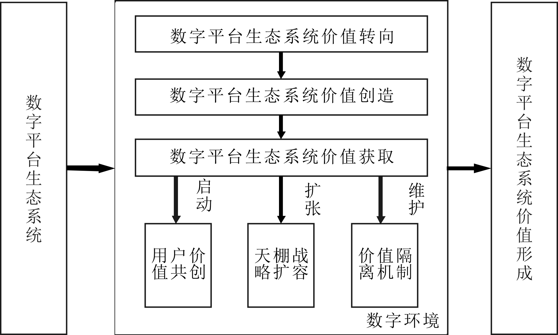 (2)创新治理机制以保障数字平台生态系统高效运营。数字平台生态系统协调不同价值利益主体,形成为实现共同价值目标而自发凝聚的多边组织。在价值创造过程中,需要明确各利益主体的权利与责任,既要保障各主体的多样化和个性化需求,又要控制不合规行为,吸纳优势种群参与价值共创。创新治理机制需要明确目标治理导向,明晰不同功能层面主体的权力和责任,确立开放式治理边界和内容,基于数字平台构建多边关系协调机制,运用数字技术创建价值创造行为控制机制,借助数字资源协同建立价值共创成果激励机制,形成协同共治体系。