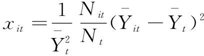 表示t时期i区域的实际人均GDP,Nit为t时期i区域的人口数,
