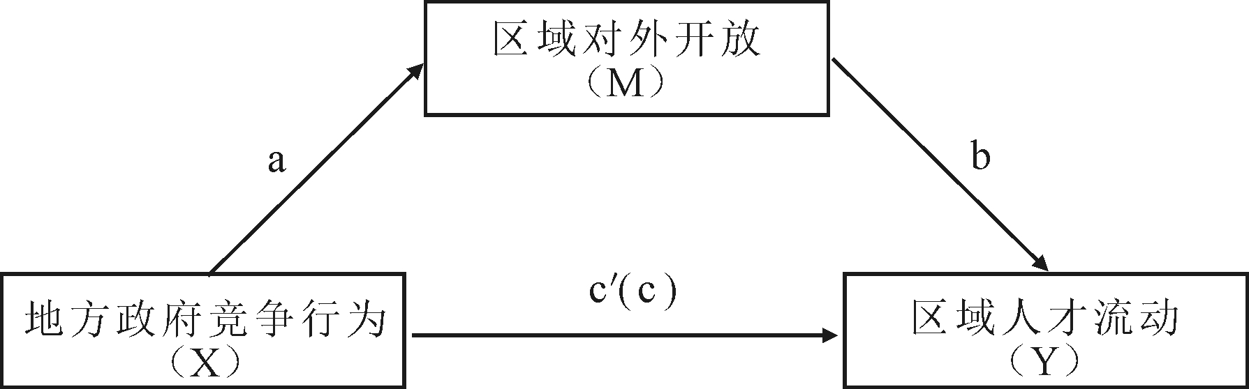 H2:地方政府竞争行为通过区域对外开放间接影响区域人才流动,即区域对外开放水平是地方政府行为影响区域人才流动的重要中介变量。