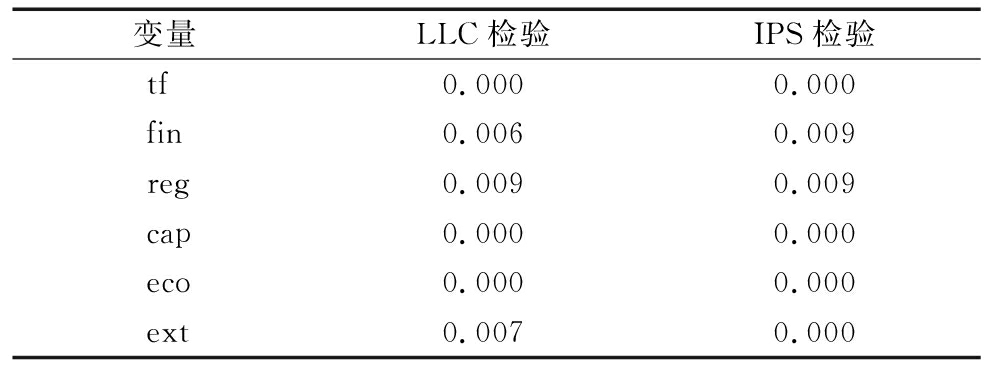 变量LLC检验IPS检验tf0.0000.000fin0.0060.009reg0.0090.009cap0.0000.000eco0.0000.000ext0.0070.000
