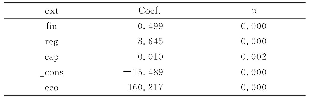 extCoef.pfin0.4990.000reg8.6450.000cap0.0100.002_cons-15.4890.000eco160.2170.000