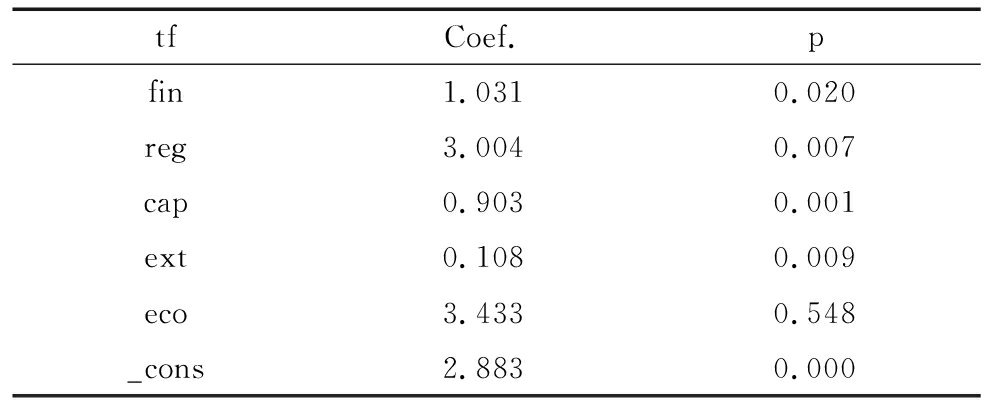 tfCoef.pfin1.0310.020reg3.0040.007cap0.9030.001ext0.1080.009eco3.4330.548_cons2.8830.000