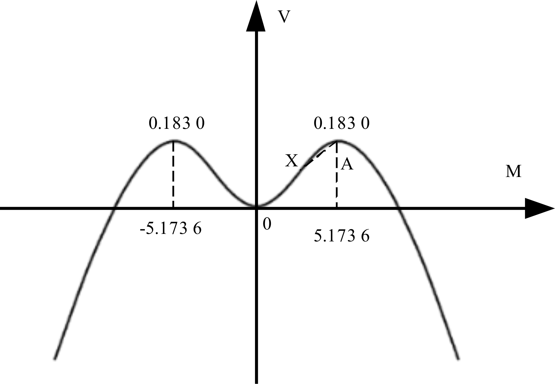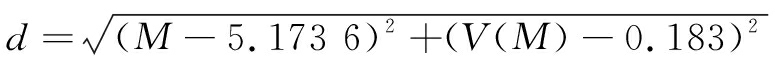 将定态解M(t)=±5.173 6代入式(12)中,解出系统产生新有序结构的稳定点A(5.173 6,0.183 0)。如图4所示,势函数曲线上任意一点X与稳定点A的距离决定其所处状态,根据距离公式得到系统状态评价函数为: