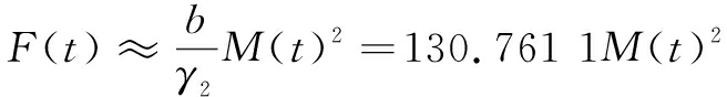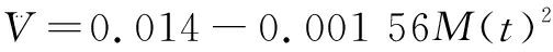 V=0.007M(t)2-0.000 13M(t)4