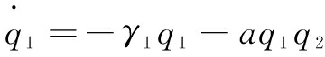 q1(t)=(1-γ1)q1(t-1)-aq1(t-1)q2(t-1)