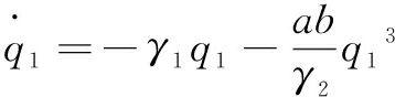为状态变量对时间的导函数,γ1 、γ2为阻尼系数,a、b为两个子系统相互作用的强度系数。控制参量γ1 、γ2、a、b的大小反映金融科技—制造业绿色转型复合系统的演化行为。当γ1(γ2)为负值时,表明q1(q2)子系统已建立促进系统有序度提高的正反馈机制,γ1(γ2)的绝对值越大,促进作用越大,系统有序度越高;当γ1(γ2)为正值时,表明q1(q2)子系统已建立抑制系统有序度提高的负反馈机制,γ1(γ2)的绝对值越大,抑制作用越大,系统有序度越低。a反映q2对q1的协同影响,当a为负值时,q2对q1起推动作用,a的绝对值越大,推动力越大;当a为正值时,q2对q1起抑制作用,a的绝对值越大,阻力越大。b反映q1对q2的协同影响,当b为负值时,q1抑制q2增长,b的绝对值越大,阻力越大;当b为正值时,q1促进q2增长,b的绝对值越大,促进作用越大。
