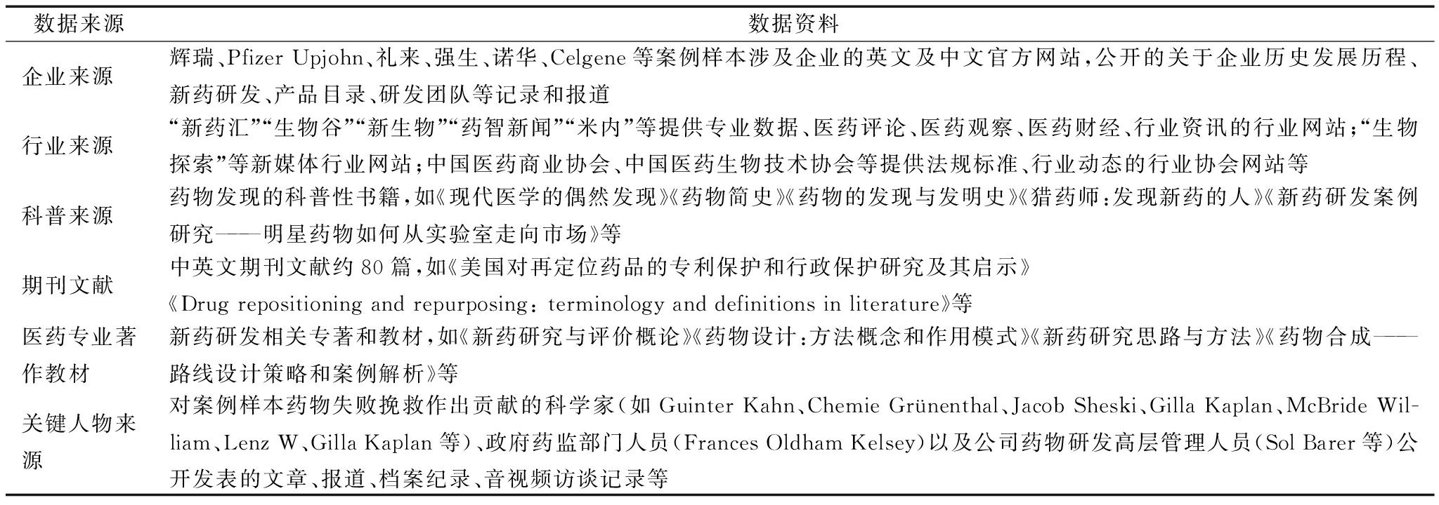 数据来源数据资料企业来源辉瑞、Pfizer Upjohn、礼来、强生、诺华、Celgene等案例样本涉及企业的英文及中文官方网站,公开的关于企业历史发展历程、新药研发、产品目录、研发团队等记录和报道行业来源“新药汇”“生物谷”“新生物”“药智新闻”“米内”等提供专业数据、医药评论、医药观察、医药财经、行业资讯的行业网站;“生物探索”等新媒体行业网站;中国医药商业协会、中国医药生物技术协会等提供法规标准、行业动态的行业协会网站等科普来源药物发现的科普性书籍,如《现代医学的偶然发现》《药物简史》《药物的发现与发明史》《猎药师:发现新药的人》《新药研发案例研究———明星药物如何从实验室走向市场》等期刊文献中英文期刊文献约80篇,如《美国对再定位药品的专利保护和行政保护研究及其启示》《Drug repositioning and repurposing: terminology and definitions in literature》等医药专业著作教材新药研发相关专著和教材,如《新药研究与评价概论》《药物设计:方法概念和作用模式》《新药研究思路与方法》《药物合成———路线设计策略和案例解析》等关键人物来源对案例样本药物失败挽救作出贡献的科学家(如Guinter Kahn、Chemie Grünenthal、Jacob Sheski、Gilla Kaplan、McBride Wil-liam、Lenz W、Gilla Kaplan等)、政府药监部门人员(Frances Oldham Kelsey)以及公司药物研发高层管理人员(Sol Barer等)公开发表的文章、报道、档案纪录、音视频访谈记录等