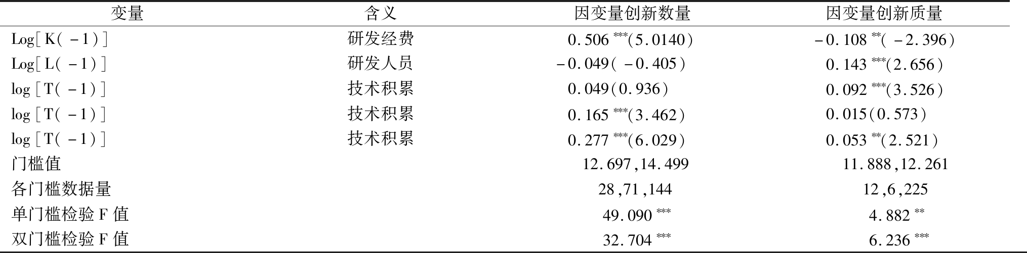 Tab.4 Threshhold estimation results of technology accumulation′s innovation quantity