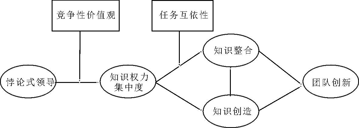 (2)基于知识管理和知识权力理论,本研究提出知识权力集中度、知识创造与知识创新在悖论式领导与团队创新关系间发挥中介桥梁作用[20]。研究结果表明,知识权力集中度、知识创造、知识创新在悖论式领导与团队创新关系中起完全中介作用;悖论式领导通过知识权力集中度将领导权力转化为知识权力,在创新过程中的知识创造、知识整合阶段合理配置知识权力与创新资源,知识权力集中度反映了知识权力在创新团队中的集中程度,有助于促进团队创新目标实现。