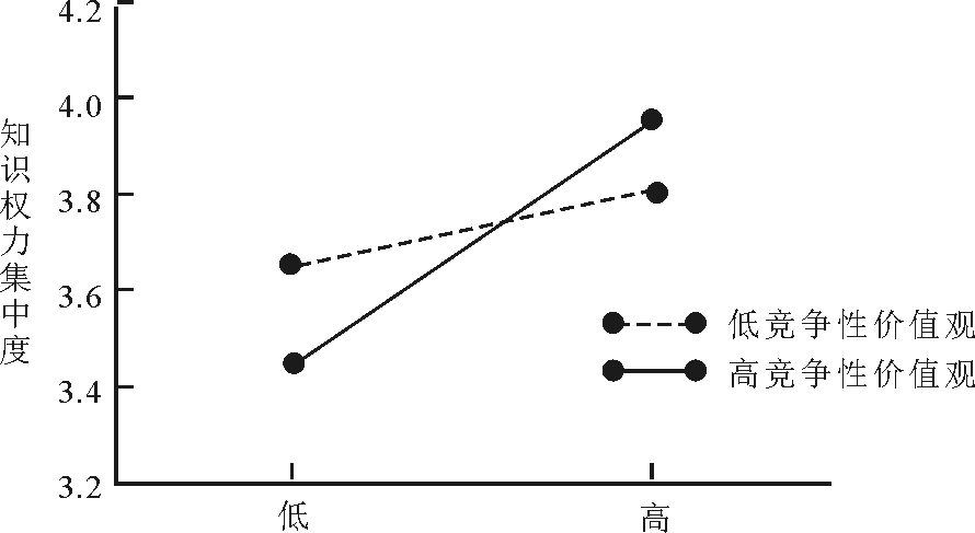 H3:竞争价值观调节悖论式领导对知识权力集中度的作用。领导者竞争价值观越强,悖论式领导对知识权力集中度的作用越显著;反之,则越弱。