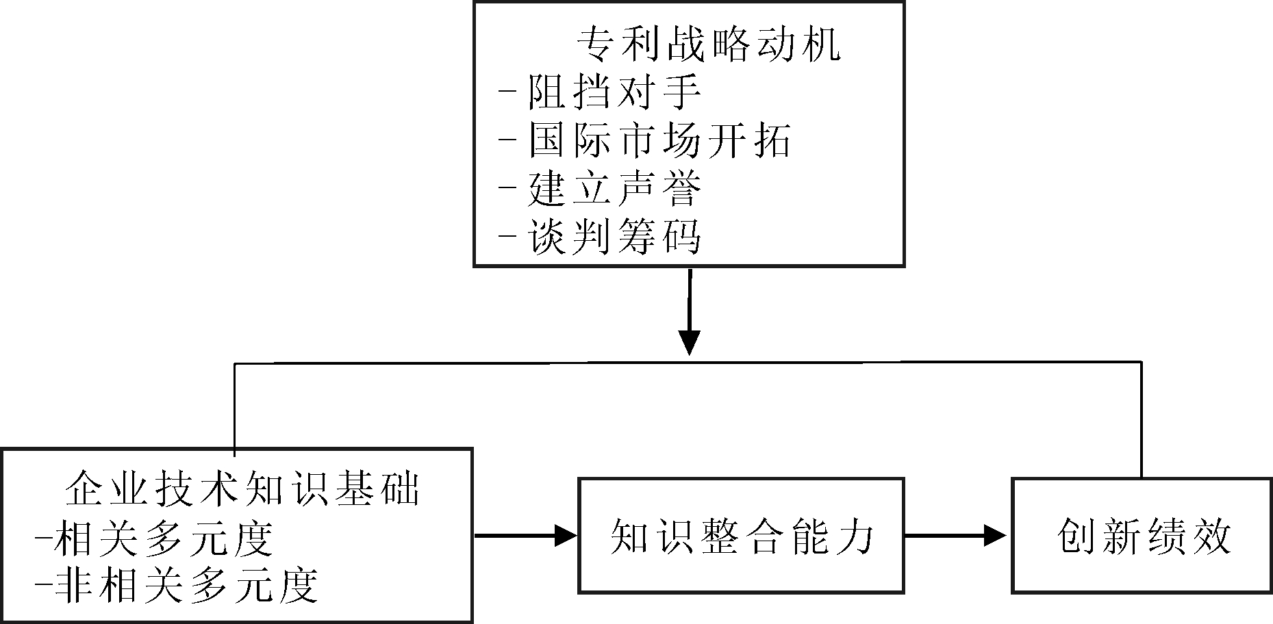 综上所述,学者们对专利战略化、企业技术知识基础以及知识整合能力进行了研究,为本文奠定了一定基础,但仍存在以下不足:①已有研究主要关注企业技术知识基础与知识整合能力对创新绩效的影响,结合专利战略化情境的研究较少;②有学者指出,在专利战略化趋势下需要重新评判专利价值,并根据专利战略指标测算组织核心专利,但是并未分析专利战略化情境下企业技术创新活动究竟会发生何种变化。