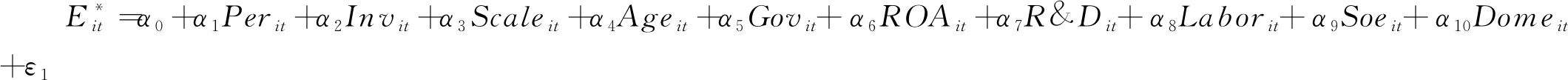 是潜在因变量,大于0时被观察到,取值为Ei,小于等于0时在0处截尾。β是估计参数,xi是自变量,μi是误差项,独立且服从正态分布:μi~N(0,σ2)。该模型也可以简化为:
